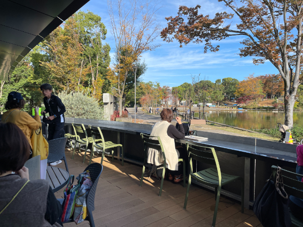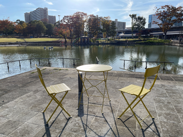 目の前には池が広がっており、自然の中で開放感いっぱいな気持ちになれるので、気分転換にはちょうどいい場所ではないでしょうか。ただ、まだ公園自体が改修工事中ではあるので、工事の音が聞こえるのがデメリットではあります。